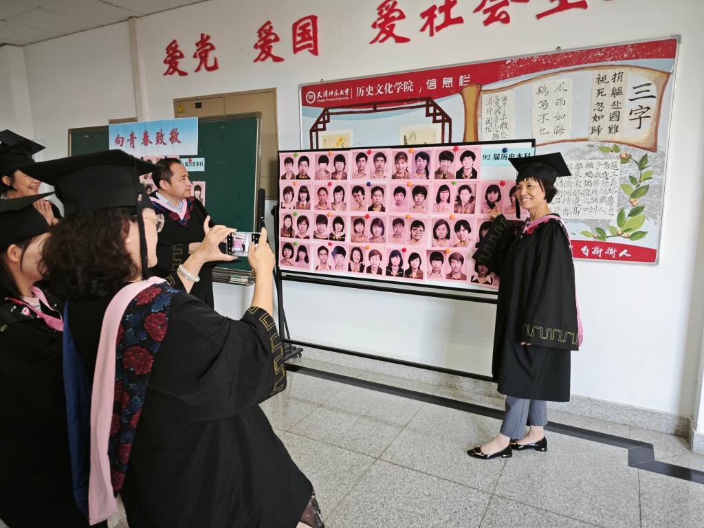 92届员工们在“向青春致敬”照片墙前驻足,回忆青春岁月,再一次穿上学士服,在二楼文化墙边拍照留念。员工们纷纷表示,今后将继续秉承“天行健,君子以自强不息”院训,为母校和公司的建设发展添砖加瓦,贡献智慧和力量。