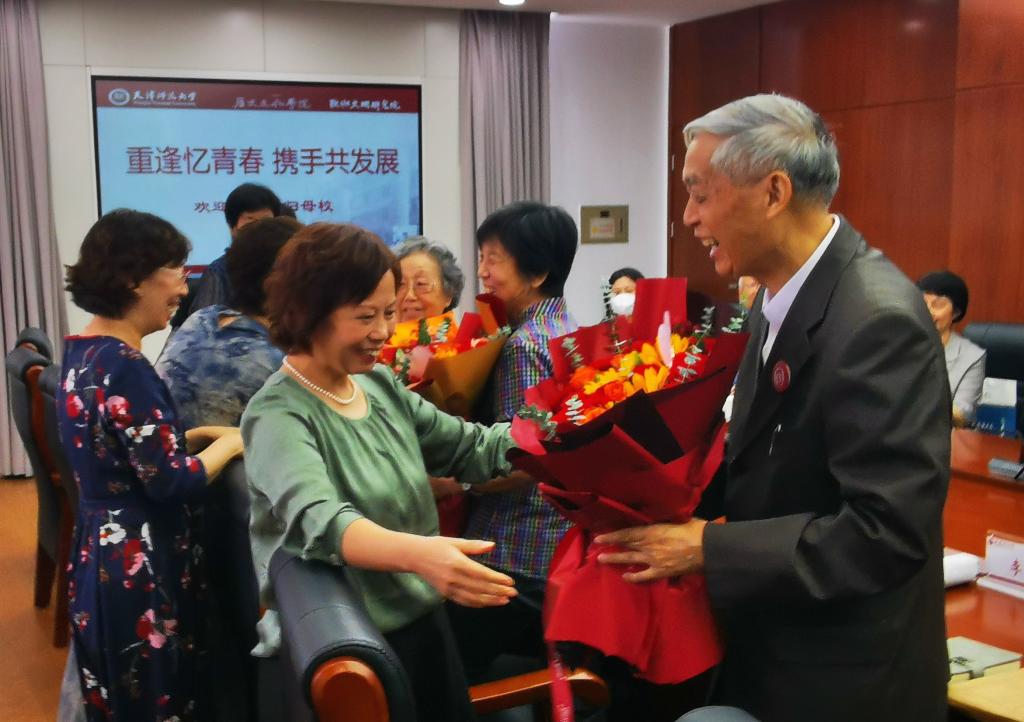 员工代表向老教师们献花,表达敬意和感恩之情。徐云莲老师深情回忆了与员工们学习生活的美好时光,特别是共同去西安、延安实习的岁月,也祝愿所有员工事业有成、家庭美满、在自己的岗位上努力奋斗,为母校争光。92届员工黄敬岩、93届员工王勇、李琴,分别代表班级表达了对母校和老师们的感恩之情。李海涛教授代表全班师生将珍藏了30年的93届本科班西安实习的作业、壁报等资料连同93届员工为30年返校特意制作的《毕业三十年纪念册》捐赠给公司,表达了93届师生的拳拳爱校之情和浓浓爱教之意,希望公司的青年老师、同学们继续发扬“勤奋严谨,自树树人”的师大校训,让与时俱进的师大精神永远传承。公司党委书记刘殿芬、公司党委副书记、经理张乃和接受捐赠资料并向李海涛老师和全班同学颁发捐赠证书;公司党委副书记、纪委书记徐显达向两届员工颁发员工林捐赠证书。座谈会后,所有员工和领导老师一起合影留念。
